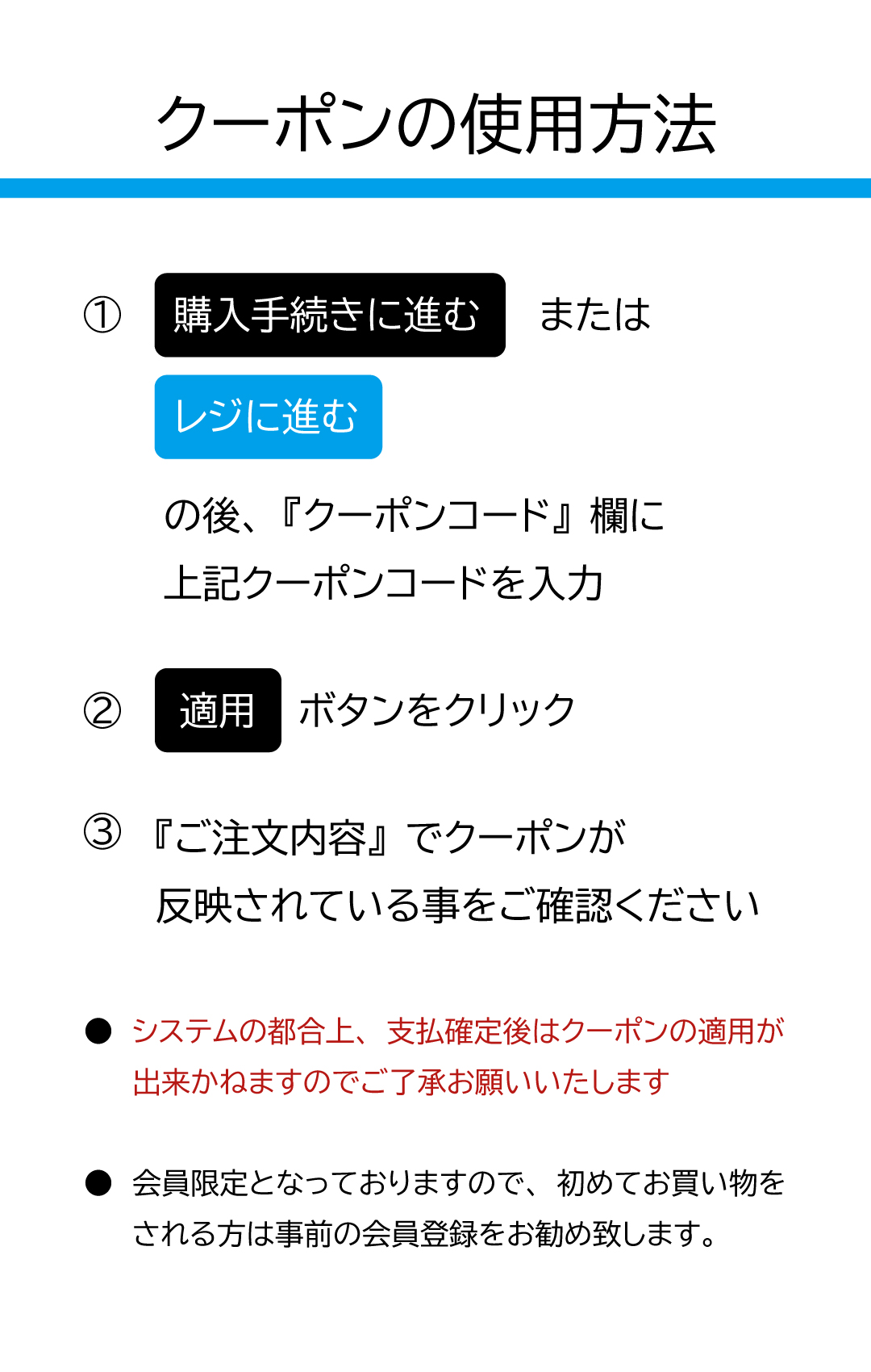 会員様限定! 1点ご購入から使用できるSPECIALクーポン!